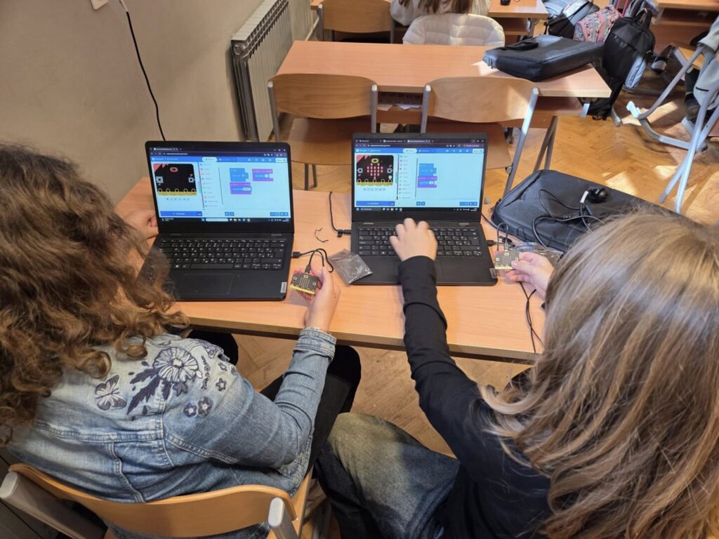 Učenici 5.c i 6.b razreda imali su priliku sudjelovati u kreativnoj i edukativnoj aktivnosti programiranja uz pomoć uređaja micro:bit. Tijekom radionica, učenici su se upoznali s osnovama kodiranja, pišući jednostavne programe koji upravljaju LED ekranom micro:bit-a, senzorskim funkcijama i drugim značajkama uređaja.