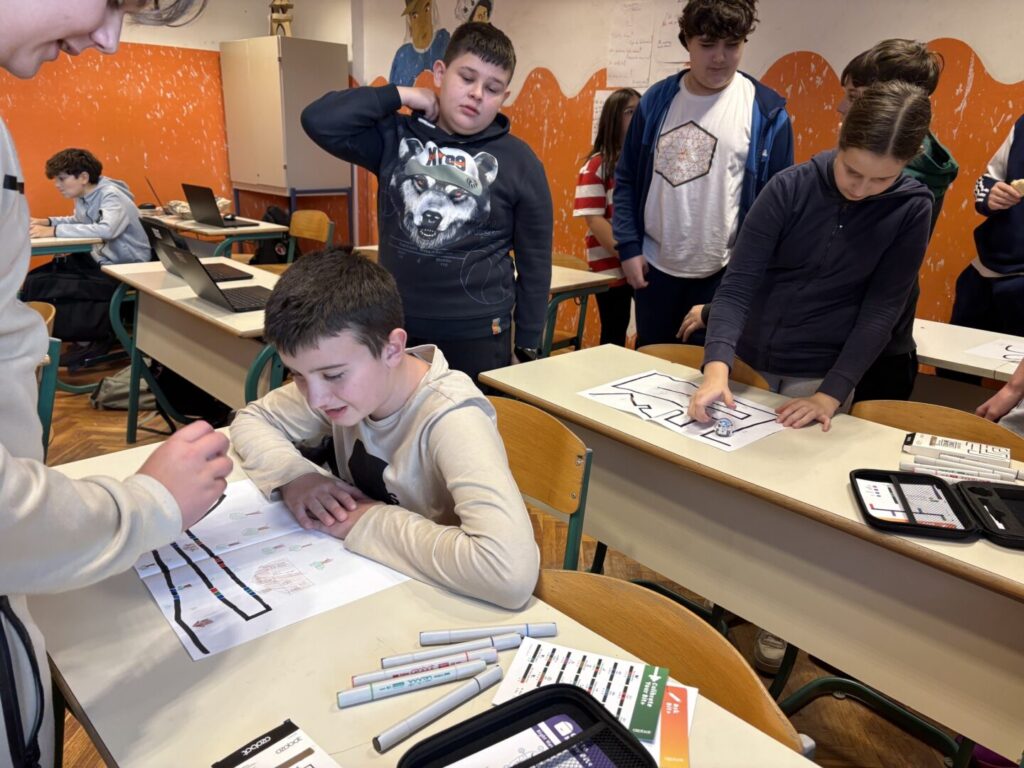 U sklopu Europskog tjedna programiranja, učenici 7.b razreda okušali su se u programiranju malih robota – Ozobota. Cilj aktivnosti bio je približiti učenicima osnovne koncepte programiranja na zabavan i kreativan način. Učenici su najprije istražili što je Ozobot, kako ga je moguće programirati i koje senzore koristi. Nakon toga uslijedio je prvi kontakt s robotom – ispitivali su kako Ozobot reagira na različite boje i linije te su učili primjenjivati Color Codes za skretanje, ubrzavanje i zaustavljanje. U završnom dijelu aktivnosti osmislili su i izradili različite priče na stazi po kojoj je Ozobot „putovao“ te predstavili svoje projekte, pokazali kako su programirali Ozobota i podijelili dojmove o tome što su naučili o programiranju.